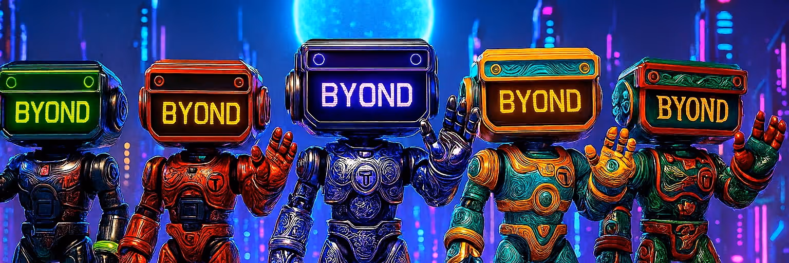 BYOND BOTZ: COLLECT UNIQUE, SELF-EVOLVING AI ROBOTS FROM COGNIS-BYONDIA OWN A PIECE OF A COSMIC CIVILIZATION'S FUTURE AND JOIN THE NETWORK.