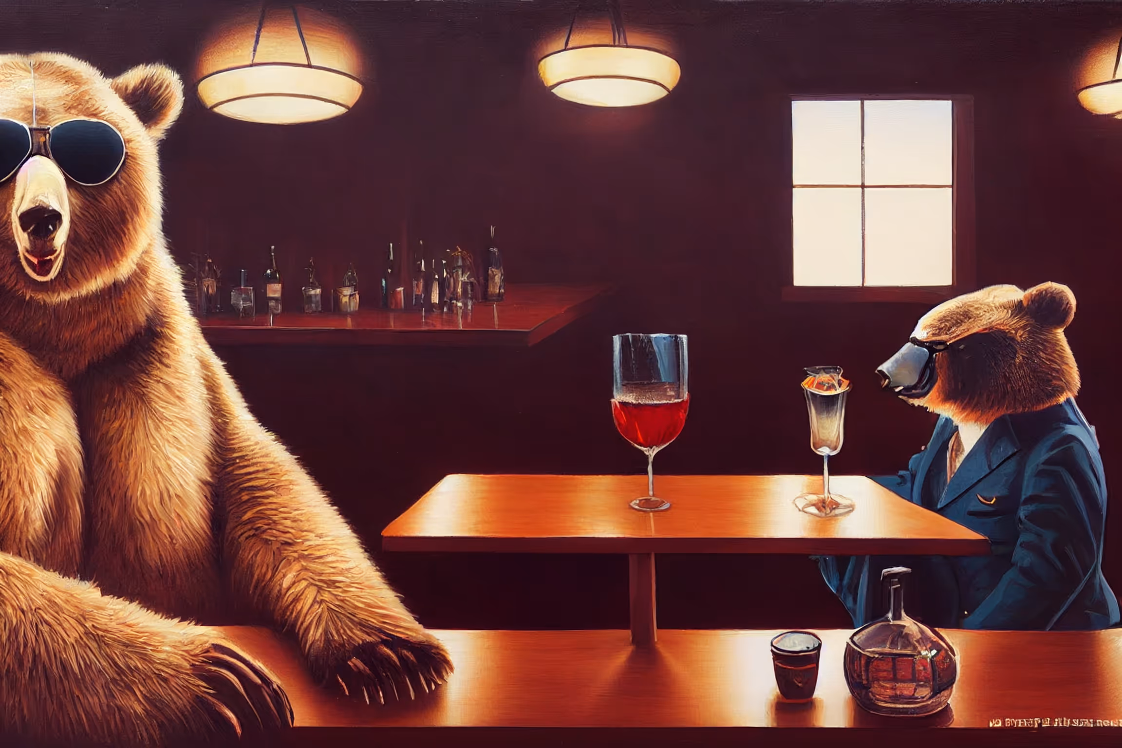 A group of very special furry friends in a bar just having fun, drinking, sinning, dancing and Dreaming of conquering the crypto universe
