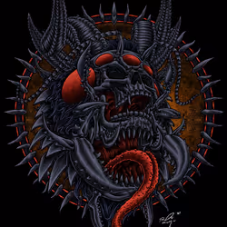 Collection of illustrative art about the combination of skulls and animals. Referring to the theme of the dark artwork