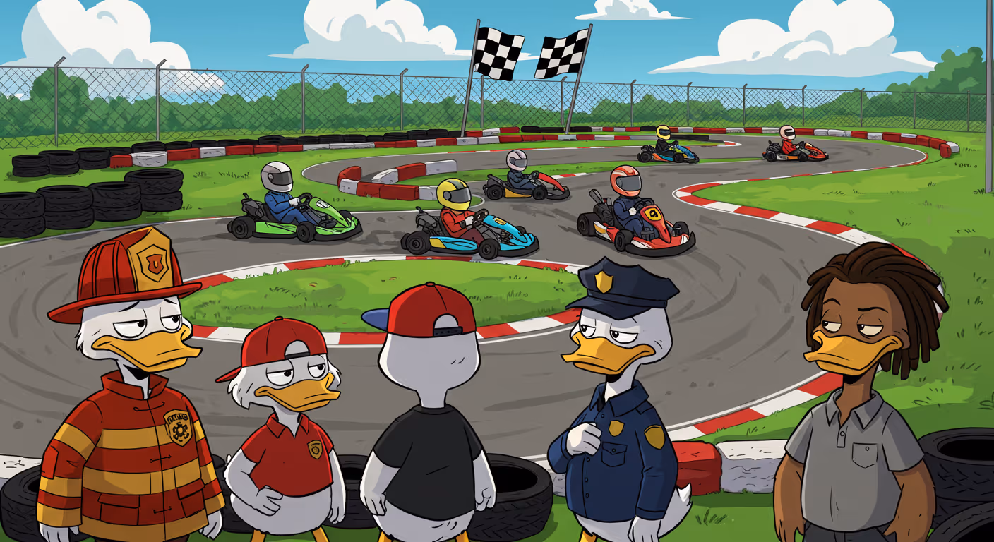Quacky McCool: "Alright, let’s get this straight. A go-kart track? Seriously? Who even has the time for racing when we could be sipping premium duck roast right here in our very own coffee shop?"