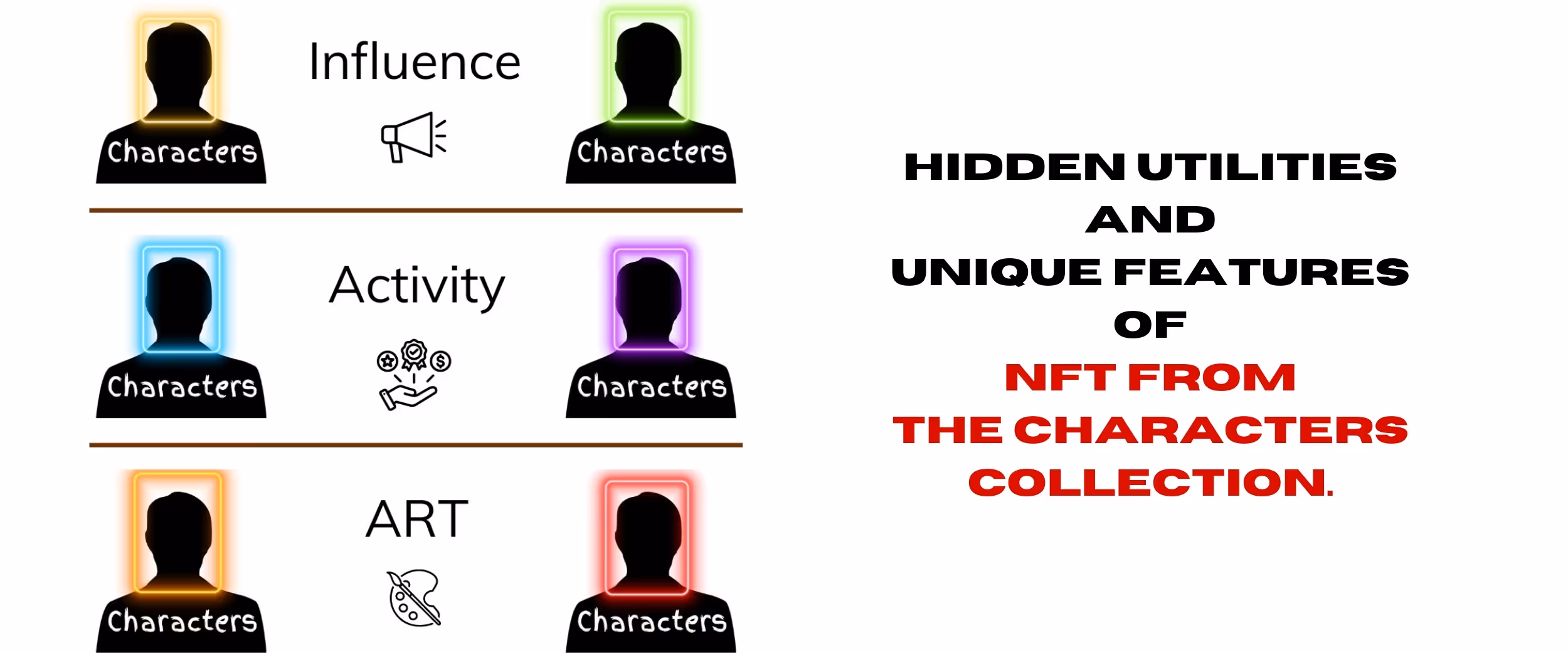 That is, if we are talking about PFP utilities, and this is a community and unity, the Characters collection preserves these values and gives each holder the right to feel part of a large community of characters, each of whom has a connection with art.