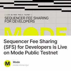 Sequencer Fee Sharing (SFS) for Developers is Live on Mode Public Testnet 297