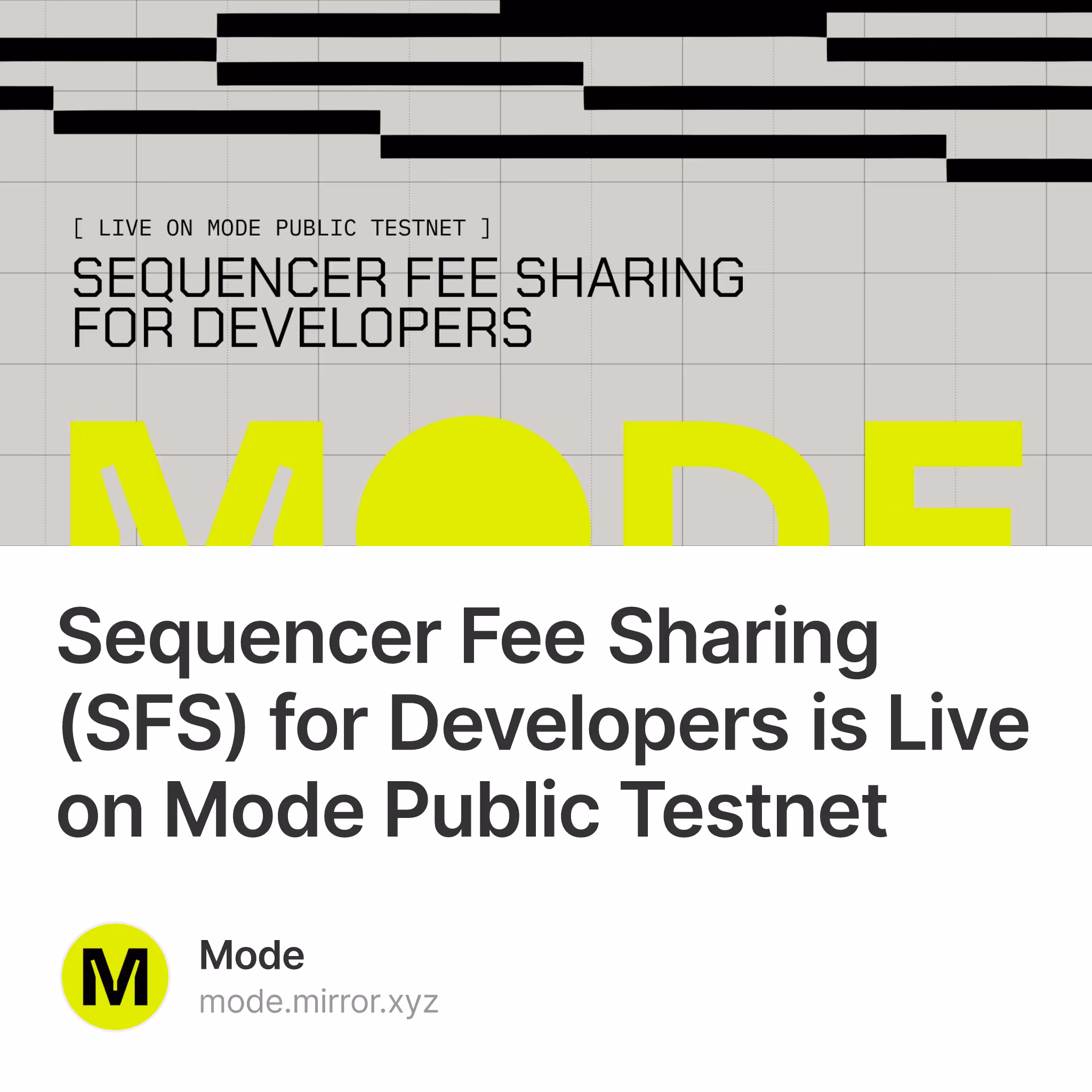 Sequencer Fee Sharing (SFS) for Developers is Live on Mode Public Testnet 378