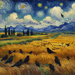 Wheat field with crows