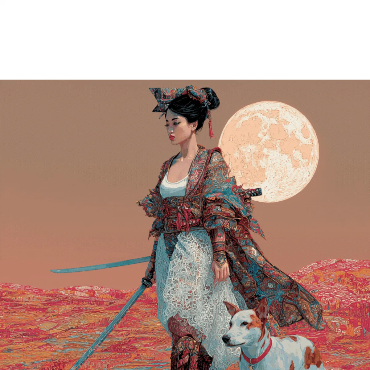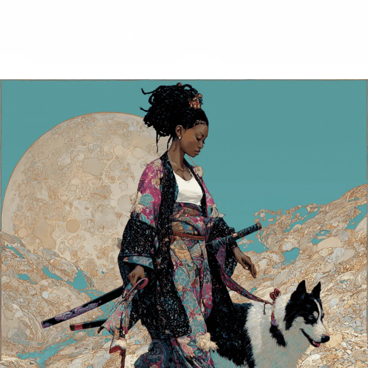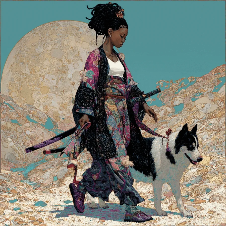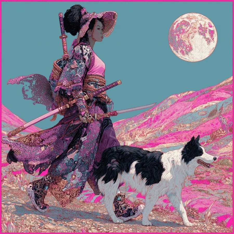 When the road no longer points ahead, the only way out… is up! In "Starbound," Yuki extends her sold-out wanderer saga into the cosmos, where the samurai has become the spacewoman. Across eight categories representing the planets of our solar system, lone travelers and their canine companions move beneath moons, planets, and distant horizons in 115 unique NFTs, blades at rest and parasols drifting like satellites. But rest easy, traveller, despite the untethered nature of our two companions, this is still a story of being bound- but this time, by trust, rather than terrain… or even gravity!