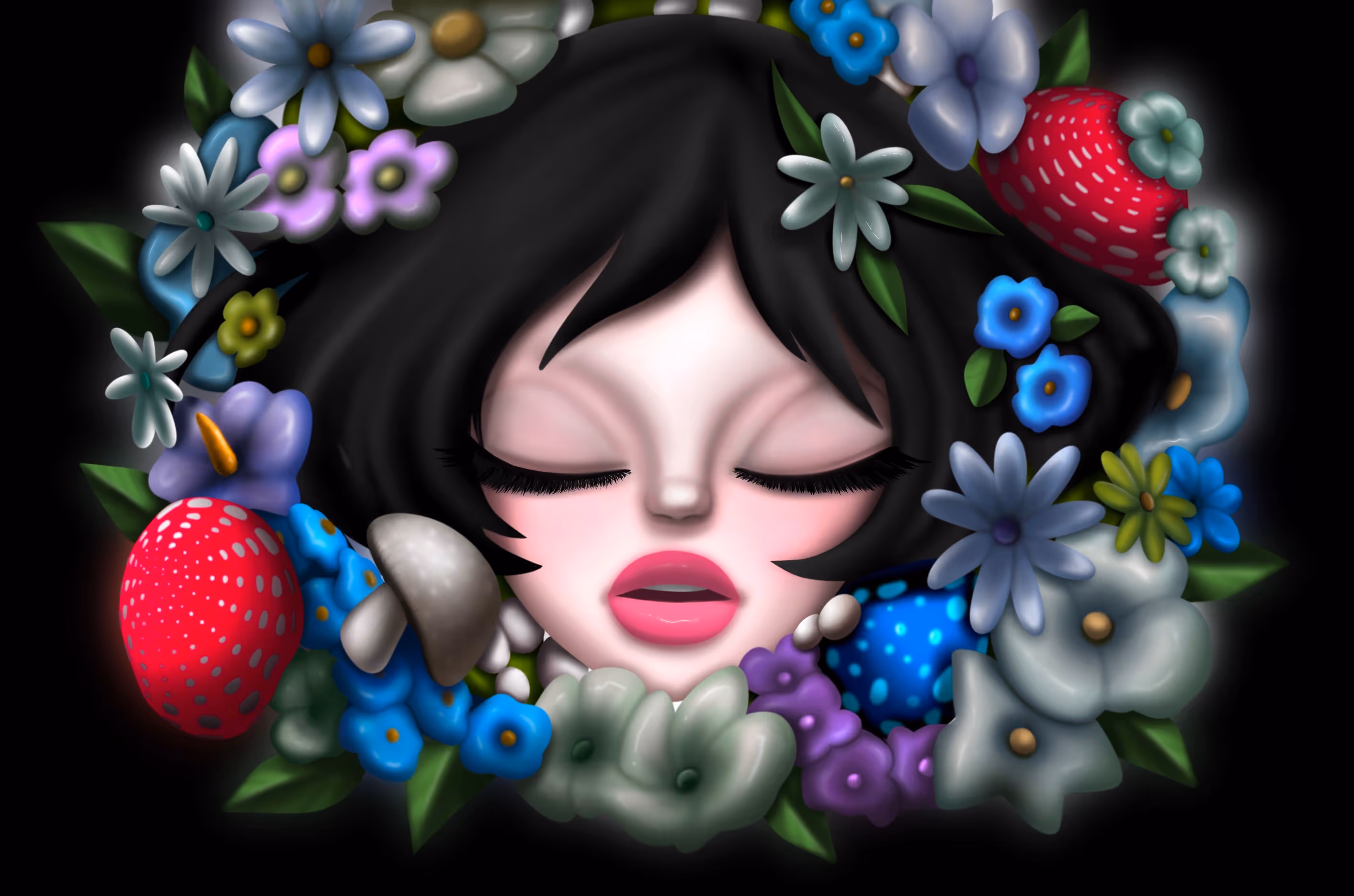 jungwoowon produces works by homage to the image of popular culture. woowon signature is a female character with big eyes and thick lips.