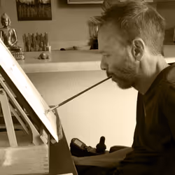 Matt Hendrick is a mouth painting quadriplegic who uses positive and negative space and as little oil paint as possible to create portraits.