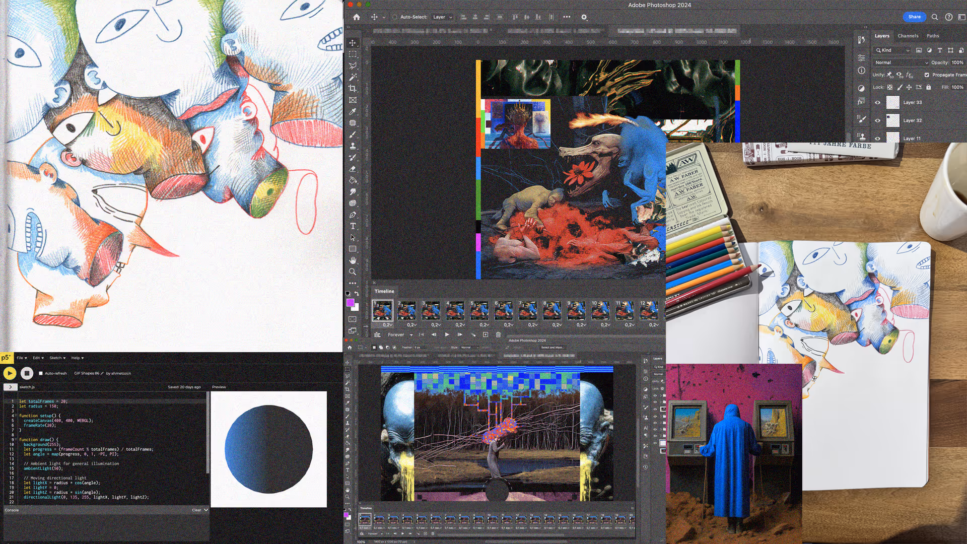 Demon Ego is multimedia artist, demonic expressionist, graphic designer and research assistant. He has doctoral degree in fine arts, assistant in university // the graphic design department; researcher on demons, monsters and mythological creatures in art & design. The reason why Demon define hisself as a "multimedia artist" is because he is not attached to any art or design field or material. For Demon, it all started 16 years ago with drawing illustrations. Surreal beings have always been his tool in his search for his own reality and in resolving human fears, illnesses, troubles and delusions. In creating them, he was inspired by horror movies, Japanese and Greek mythology, comics, video games, knowledge in psychology & philosophy, anime, manga etc. To date, he has created more than a thousand works using countless media. And with some of them are; He opened a solo show in Savannah, participated in group exhibitions and projects in various European countries and museums; he opened 4 solo exhibitions in his country, his works were featured in Slanted Magazine and Pictoplasma Magazine. Everything Demon has tried and created so far has given more strength to his next works and limitless his vision in my art. Finally, Demon decided to continue with the collage-illustration works he created. In these works you can see everything that belongs to Demon and everything that he is researching and pursuing. By painting Demon's characters piece by piece in their abstract universe, he present their stories that seem to belong to them but also contain human aspects. And while creating these works, he use many media: Lines, my indispensable notebooks, video, 3D, codes (java), abstract forms, collage, and artificial intelligence images that he obtained by giving his abstract paintings as data. (Please go demonego.com for more) ⚉
