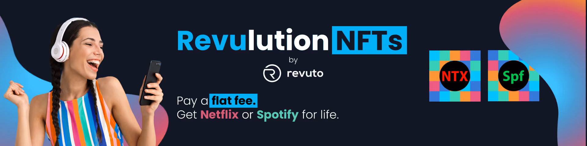 Buy a lifetime Netflix or Spotify subscription as an NFT, and as long as you own the NFT, Revuto will pay for your subscription every month!