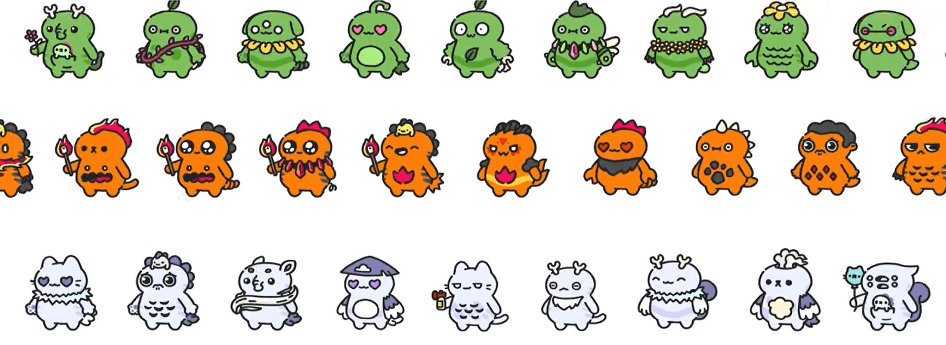 There are over 17 million total unique combinations of Pets, with more than 4 million combinations possible in each element! The cool and cute combinations are nearly endless.
