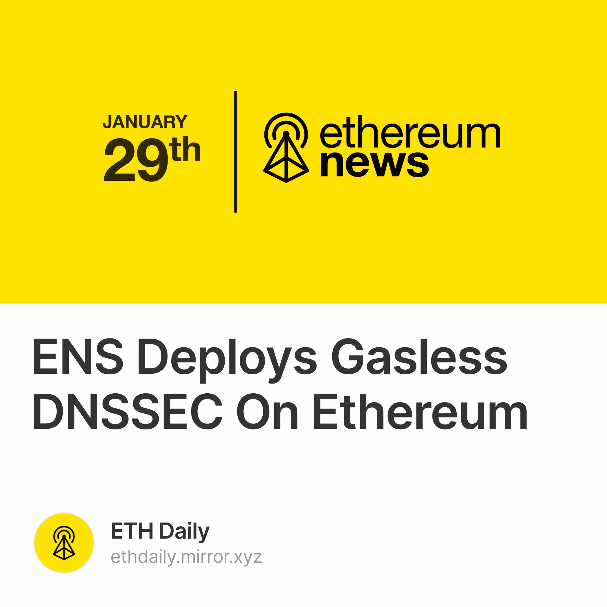 ENS Deploys Gasless DNSSEC On Ethereum - 收藏 |開放海